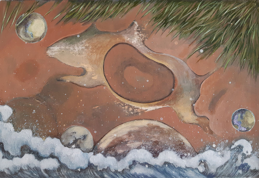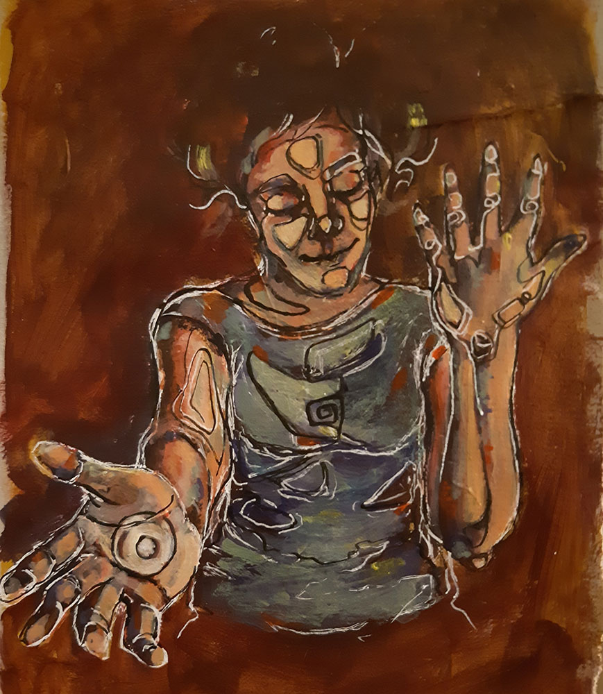 I always try to use my paintings and skills as a tool for talking about sahaj subjects and draw what inspires me, for instant when I was reading a story about Shri Vishnu. I started to paint and illustrate some images that came into my attention.