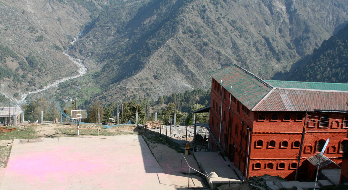 School in Dharamsala is like a hill fort in the Himachali style (above). She brings movement into the lines of the building to facilitate the flow of vibrations. Even matter has vibrations, a building should be designed to enhance the vibrations and thus bring peace and joy to its inhabitants. From a building, one can feel the vibrations of the architect.