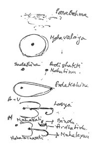 In His seed form Parabrahma is dormant, lying in this condition for millions of years (Kalpas). The separation of the one from the other only takes place after the awakening of Parabrahma from His state of cosmic sleep. In Figure I ‘S’ represents the Divine Seed.